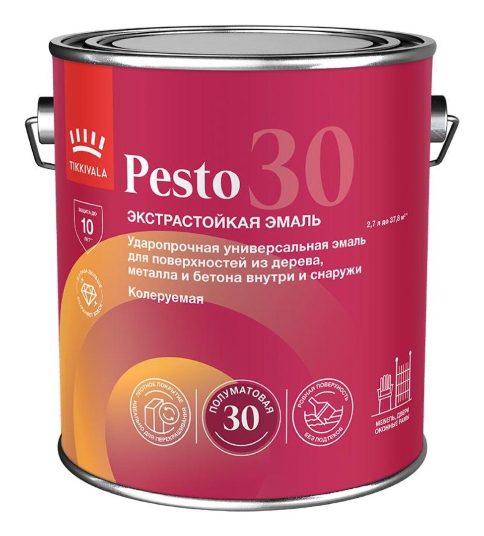 Стойкая универсальная полуматовая эмаль TIKKIVALA PESTO 30.