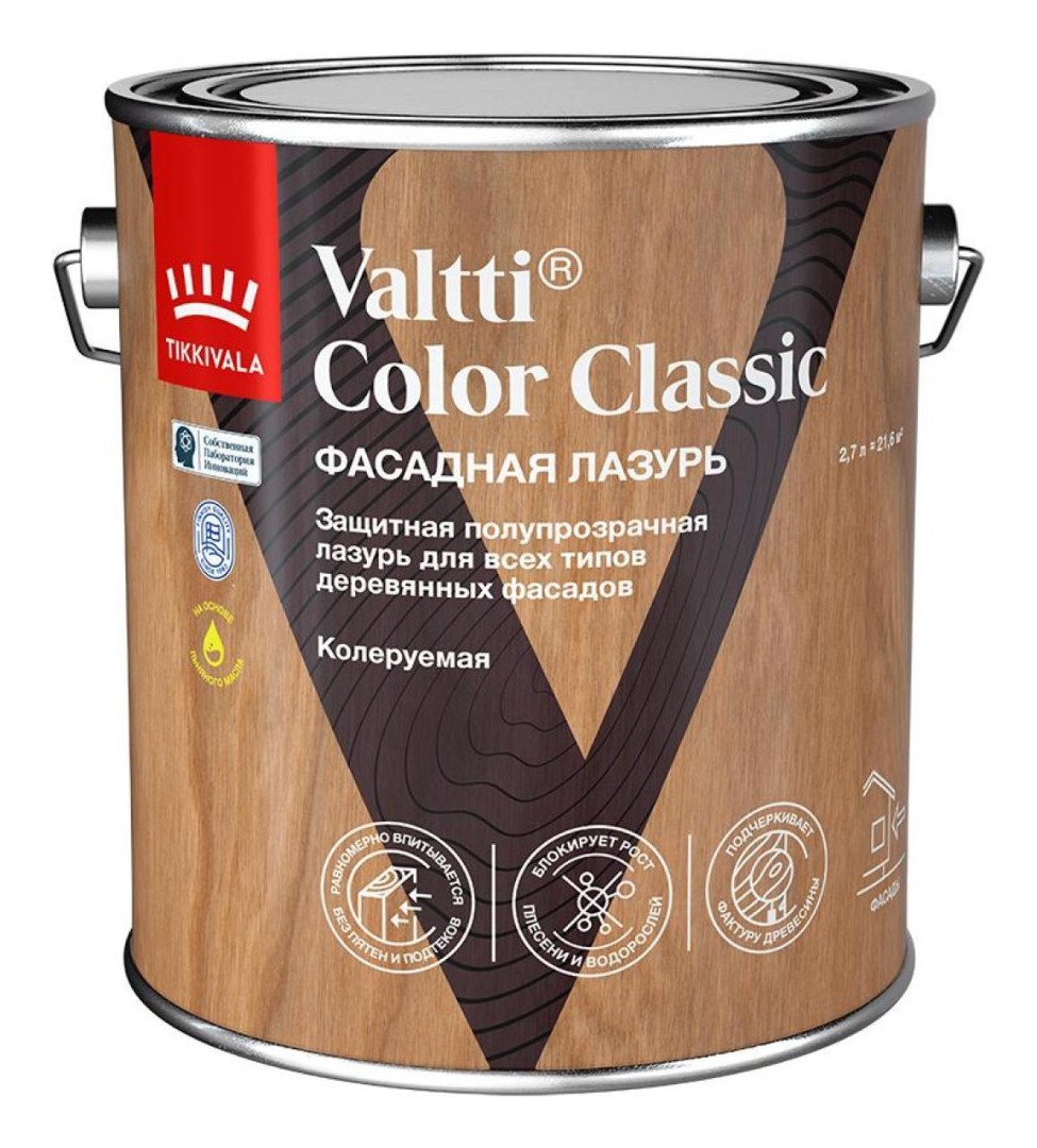 Защитная полупрозрачная лазурь TIKKIVALA VALTTI COLOR CLASSIC для всех типов деревянных фасадов.