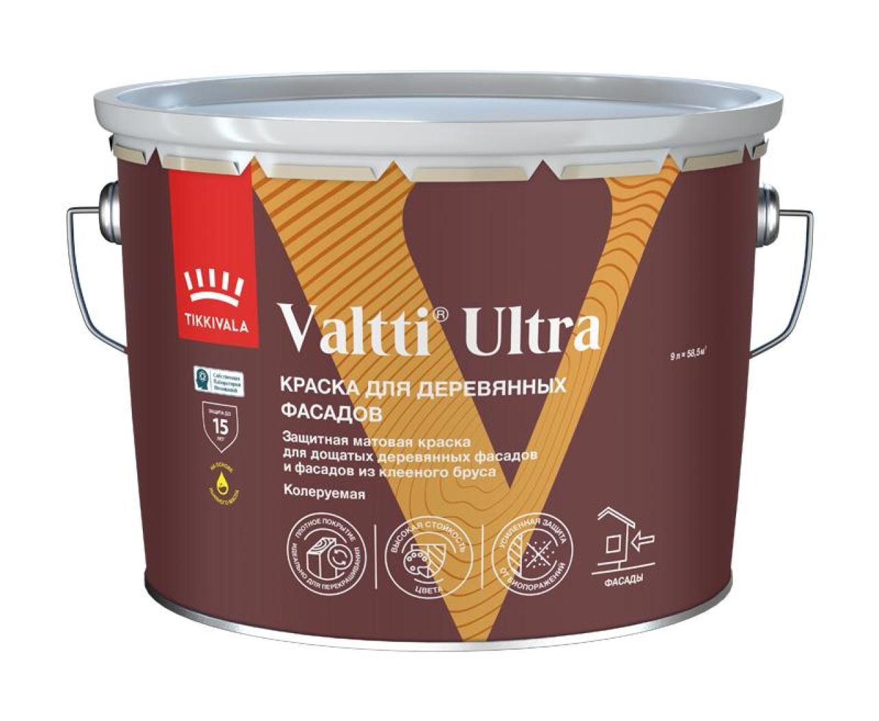 Защитная матовая краска TIKKIVALA VALTTI ULTRA для дощатых деревянных фасадов и фасадов из клееного бруса.
